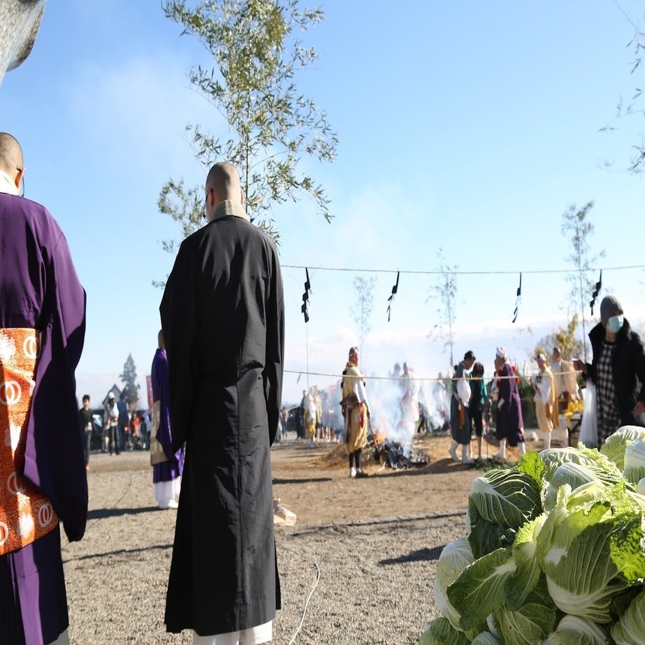 しかし天明寺では、このよくある護摩法要を地域の人々が楽しみにする年末の大イベントへと育ててきました。当日は全国から参拝者が訪れ、参道は人の列で埋まります。白菜に祈りを込めて授与するというユニークな形式が、口コミやSNSで話題になりました。