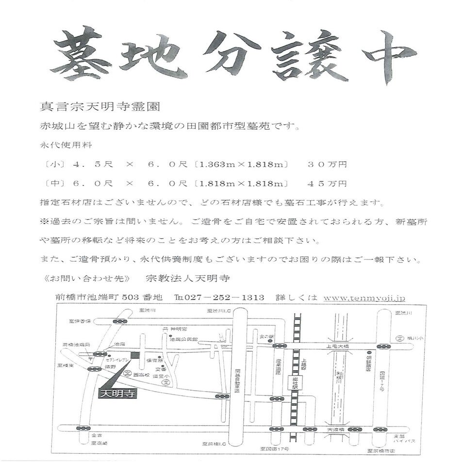 まず、ホームページから天明寺の仮の地図を印刷。それをカッターで切って、別の紙に貼り付け、一番上に筆で大きく「墓地分譲中」と書きました。乾いたらコンビニで何十枚もコピーし、それを持って地域を区切りながら一軒一軒ポストに投函しました。